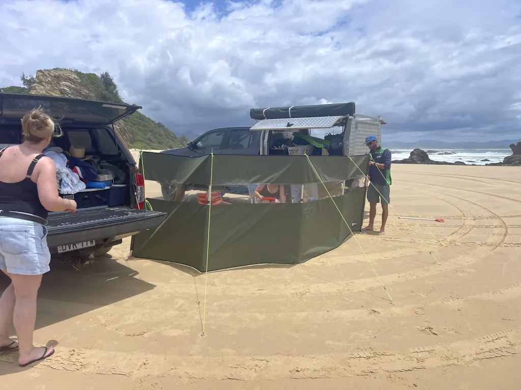 The Aussie Wind wall is the best camping accessory we have purchased. Easy to set up, and works perfectly! Our first use was on the beach on a windy morning..
